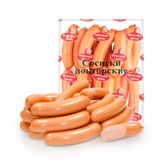 Classic “Doktorskie” sausages from the trusted Krasnaya Tsena brand, known for their soft texture and mild, balanced flavor.