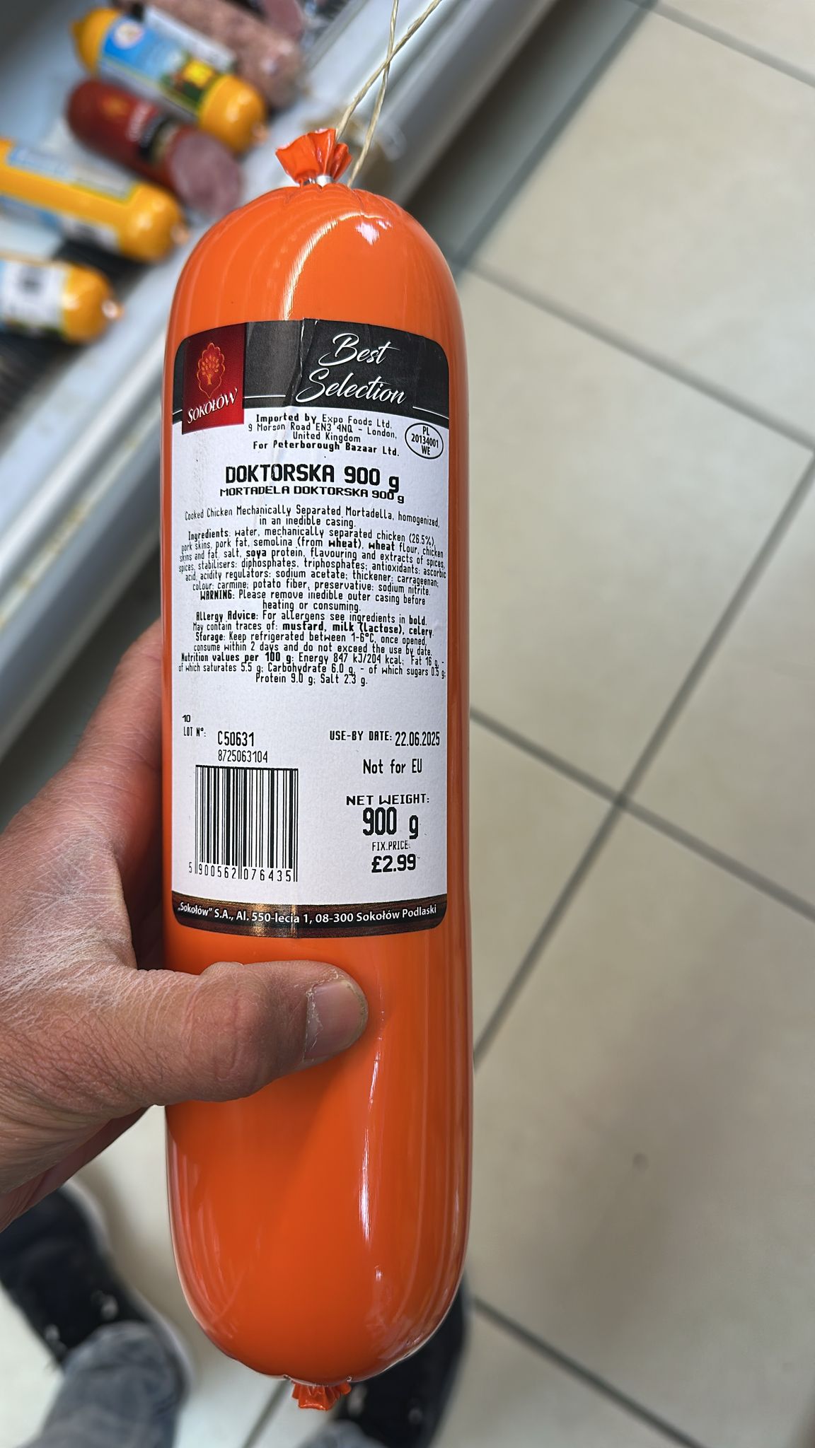 Doktorska Mortadela with Paprika is a traditional Polish cooked sausage made primarily from chicken and pork fat, enhanced with sweet paprika for a distinctive flavor and vibrant color. This sausage is versatile, suitable for sandwiches, salads, or as part of a charcuterie board.